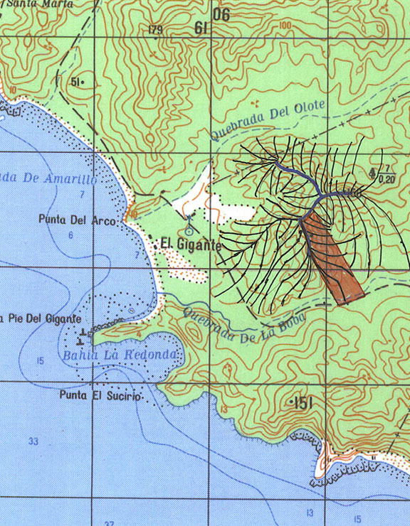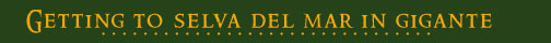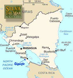Driving southwest on the Pan American Highway, as you approach Rivas, look for a sign that says "Rancho Santana". Turn right there. That will take you past Rivas, toward Tola. When the street T's, make a right and continue toward Tola. Go through Tola and look again for another Rancho Santana sign. Follow that sign to the dirt road heading northwest. Turn left at the signs for Arenas and San Miguel Resort. You are now on the road to Selva Del Mar. The dirt road the meanders through a valley to the fishing village at Pie de Gigante the Foot of the Giant. Selva Del Mar is on your right side, about 2 kilometers before you reach the beach. |